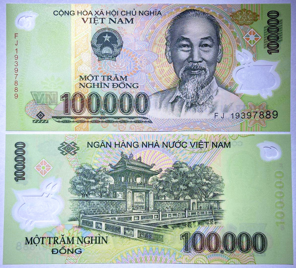 Vietnam 100000 Dong, Random Year, Polymer Original Banknote for Collection