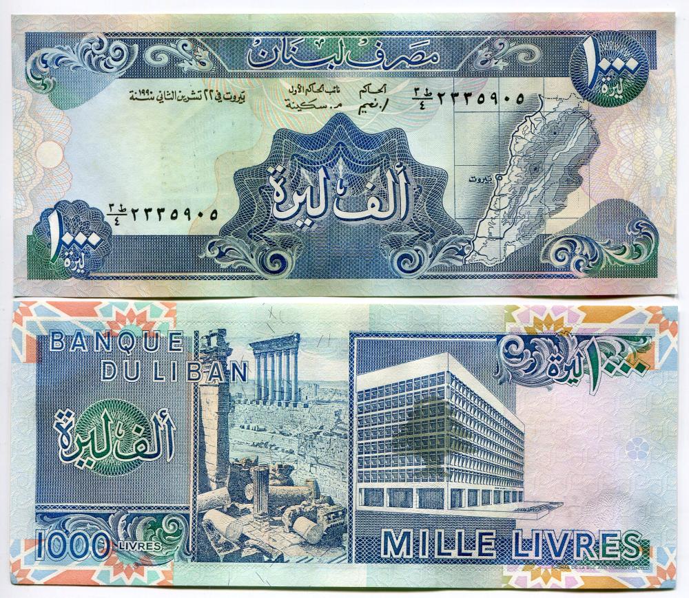 Lebanon 1000 Livres,1988-1990 P-69, Banknote for Collection