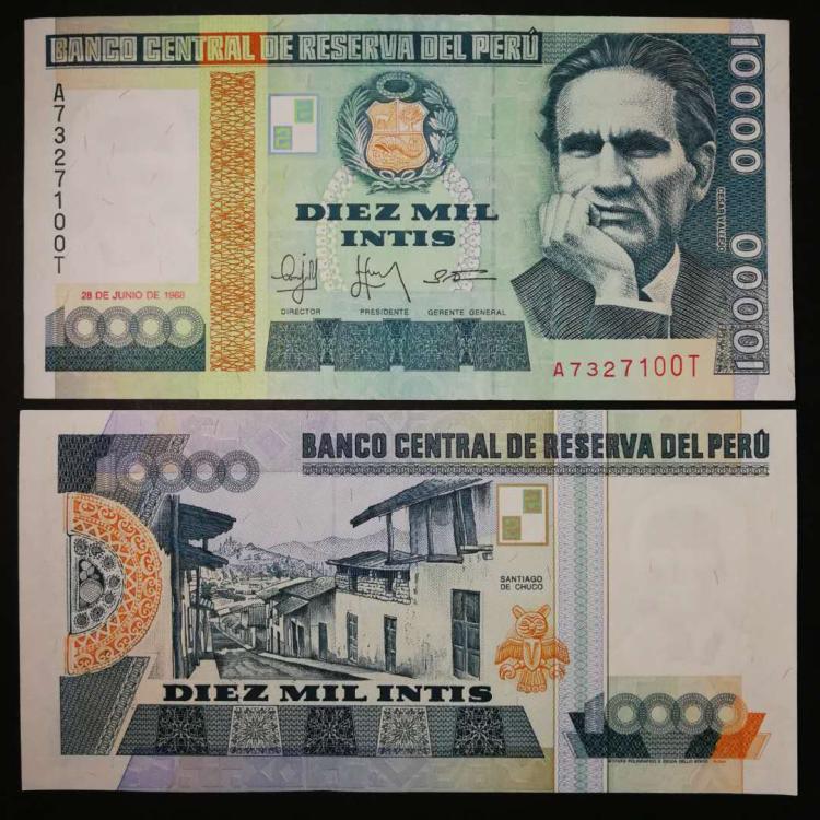 Peru 10000 Mil Intis, Random Year , UNC Banknote for Collection