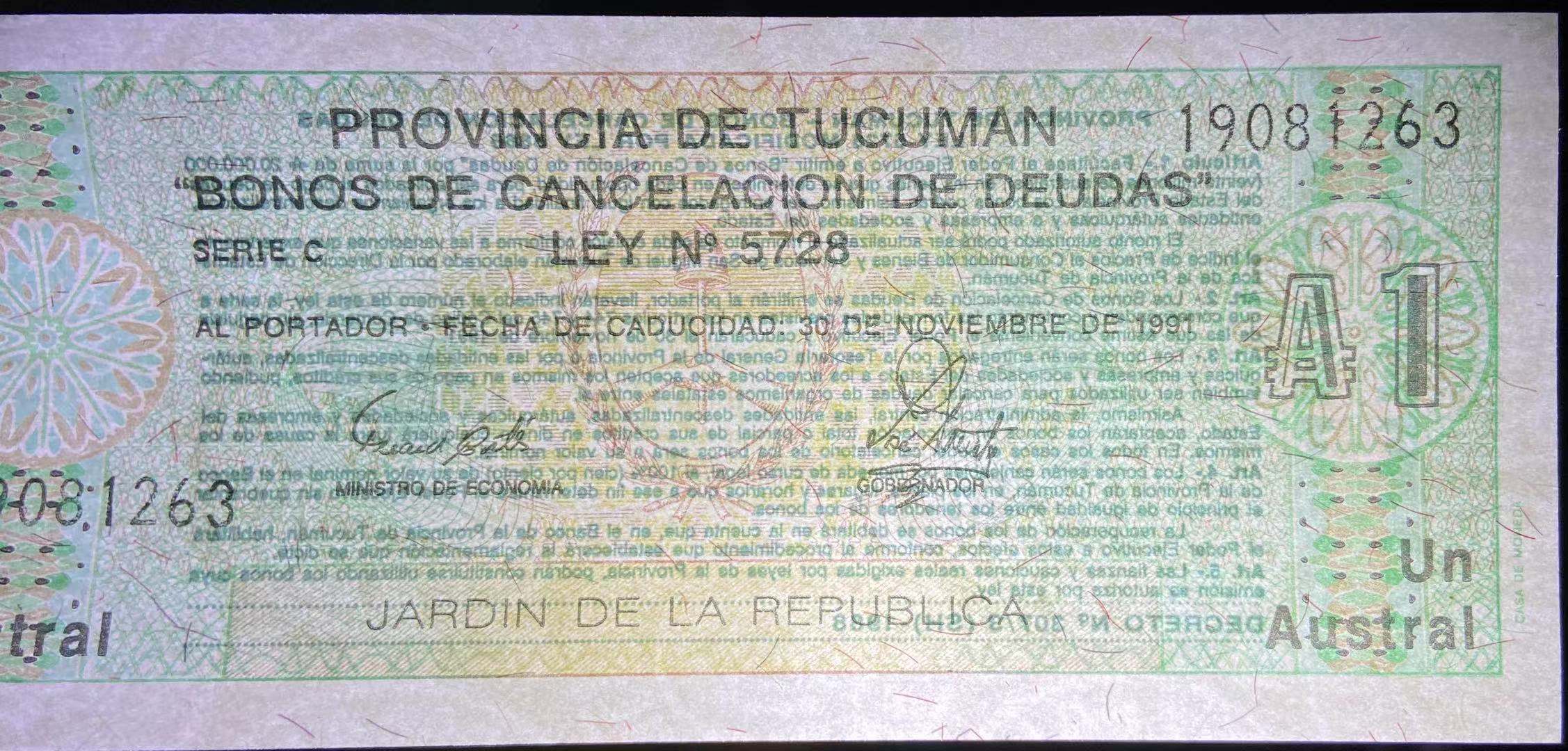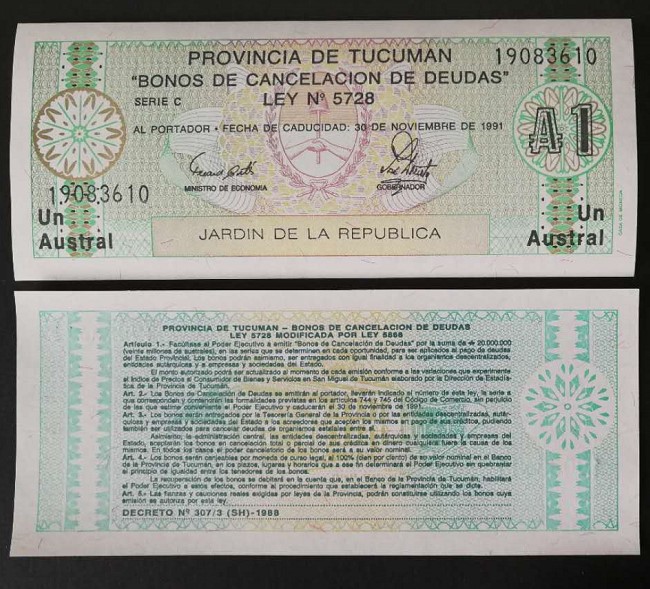 Argentina Tucuman 1 Austral, 1991 S2711, Banknote