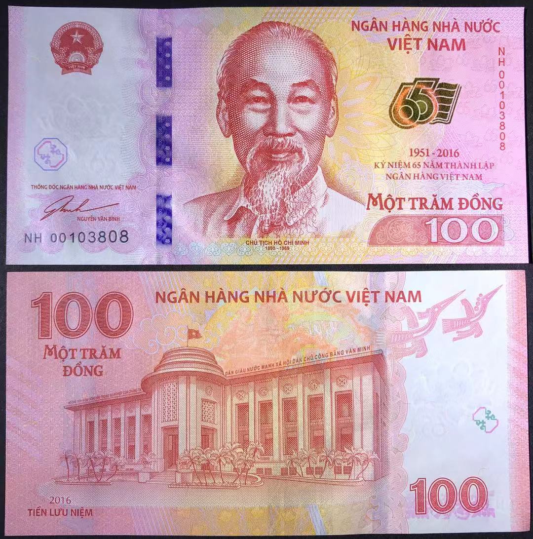 Vietnam 100 Dong, 2016 P-125, The 65th Anniversary of The Founding of The National Bank, Banknote for Collection
