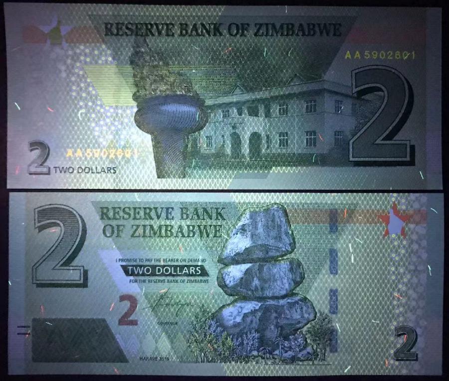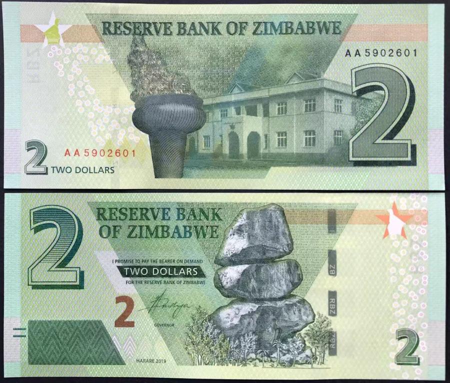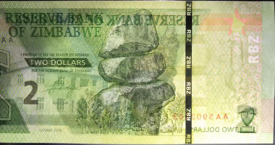Zimbabwe 2 Dollars, 2019 P-New, UNC Banknote for Collection