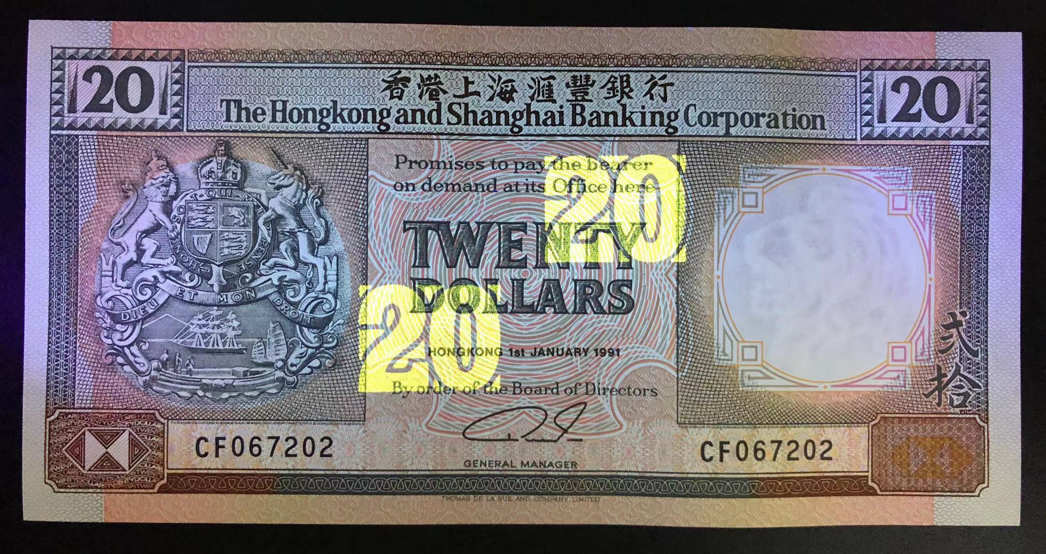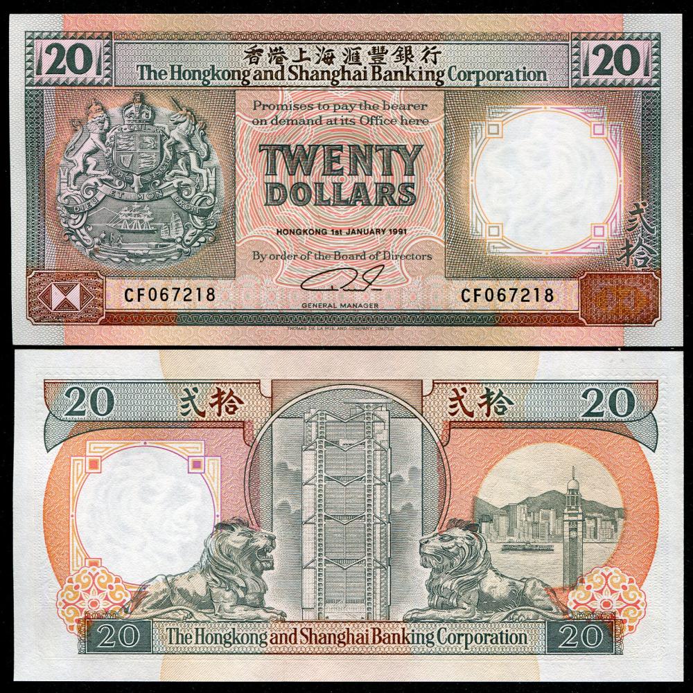 China Hong Kong, 20 Dollars 1991 P-197, UNC Banknote for Collection