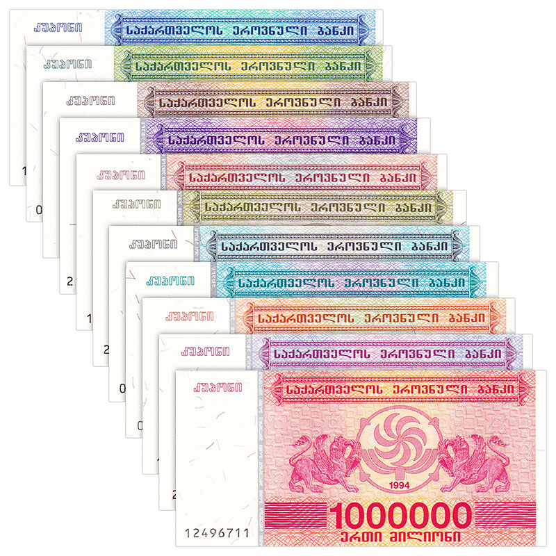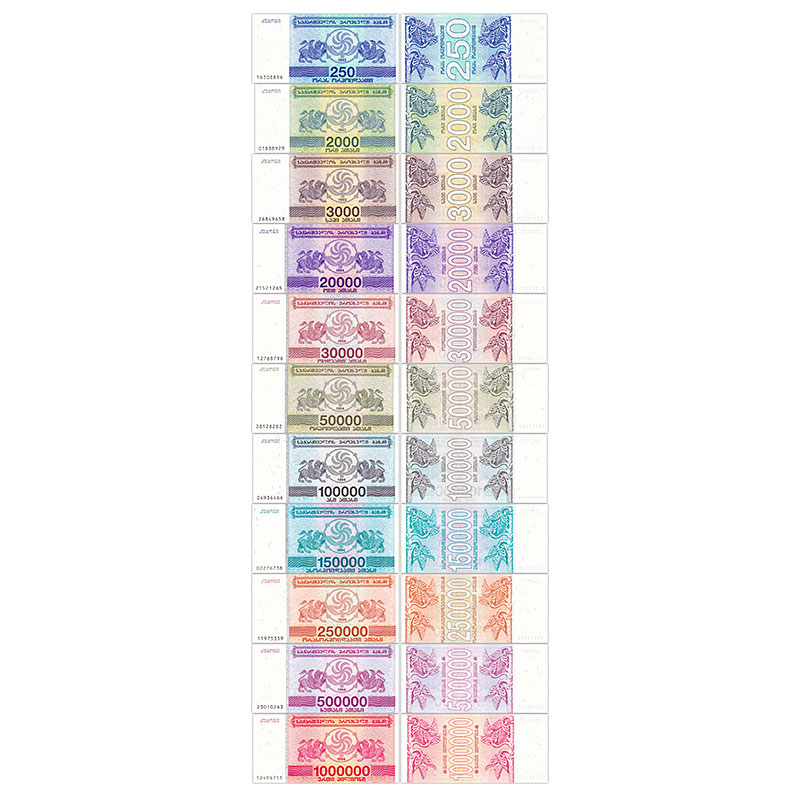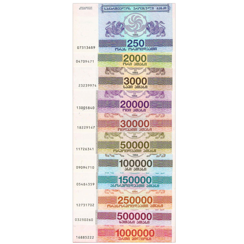 Georgia, Set 11 PCS, 250-1000000 Lari Banknotes, UNC Real Original Banknote for Collection, Paper Money, 1 Set