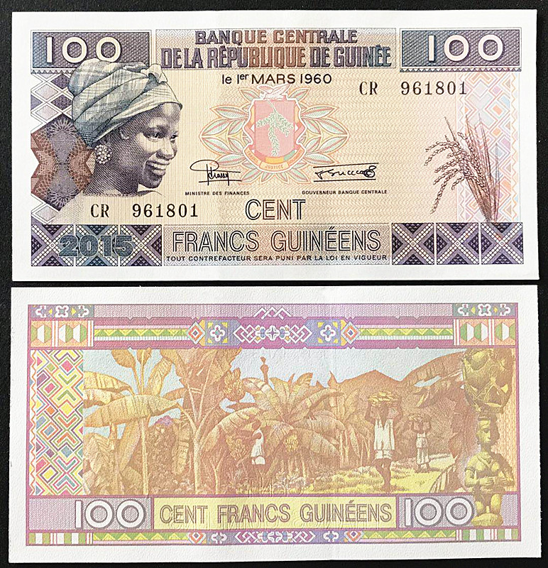 Guinea 100 Francs, 2015 P-A47, UNC Original Banknote for Collection