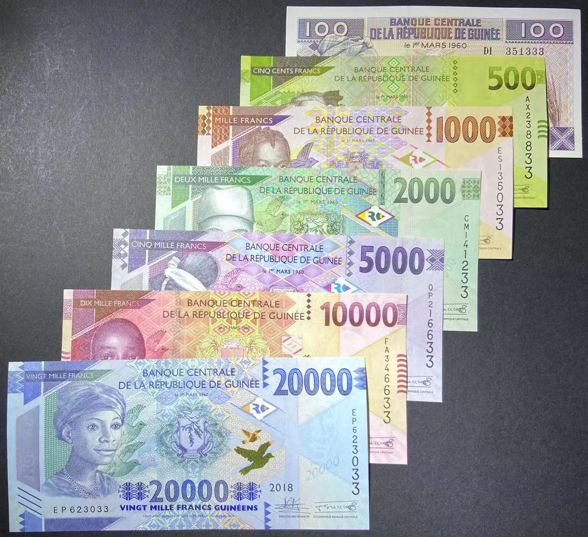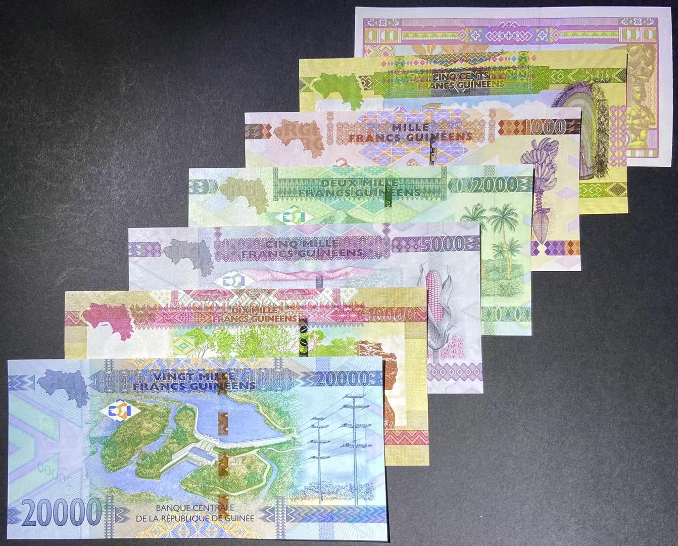 Guinea, Set 7 PCS, 100-20000 Francs Banknotes, UNC Original Banknote for Collection, Paper Money