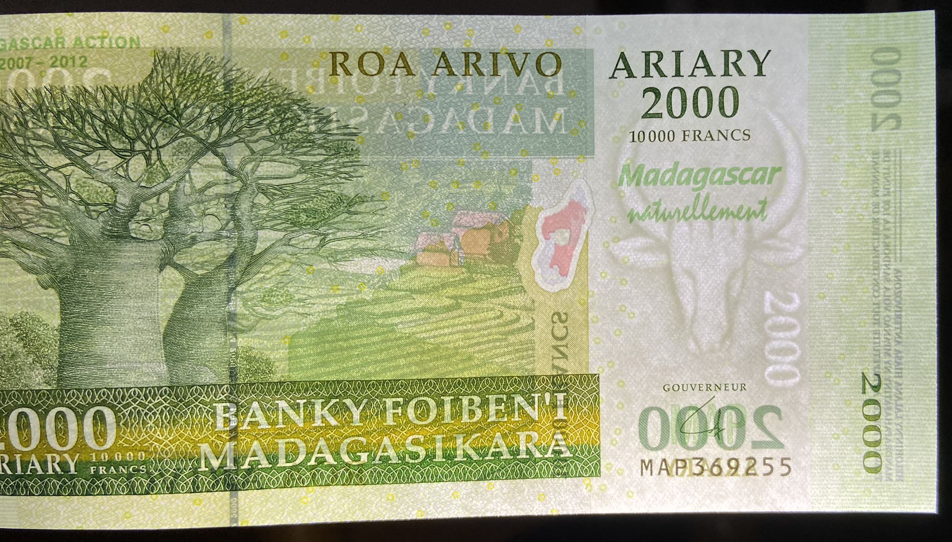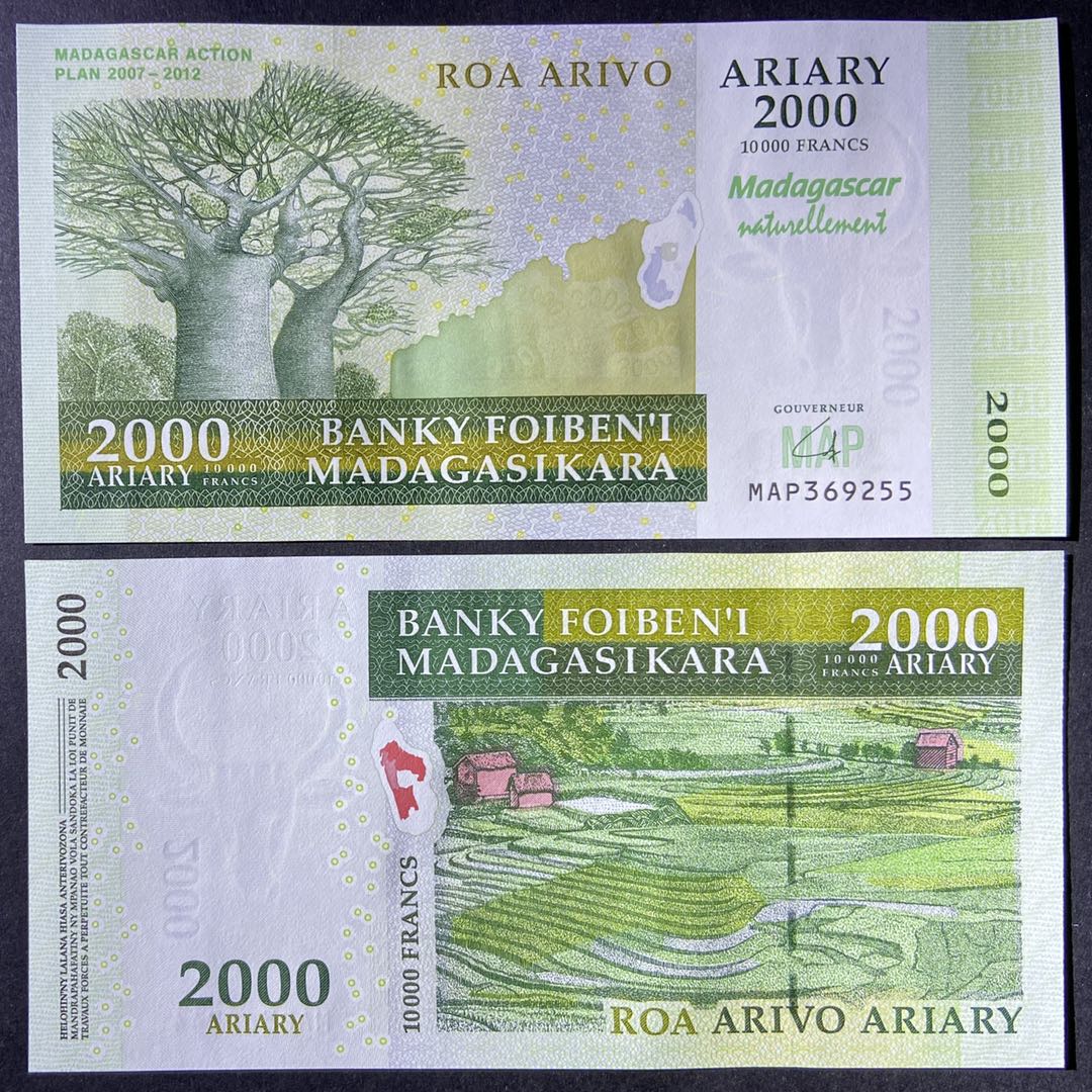Madagascar, 2000 Ariary, 2007 P-93, UNC Original Banknote 1 Piece