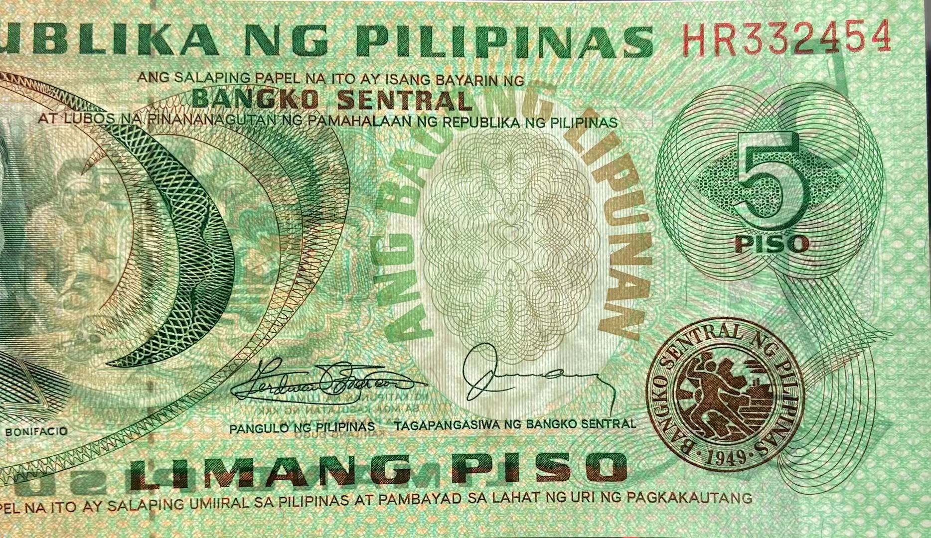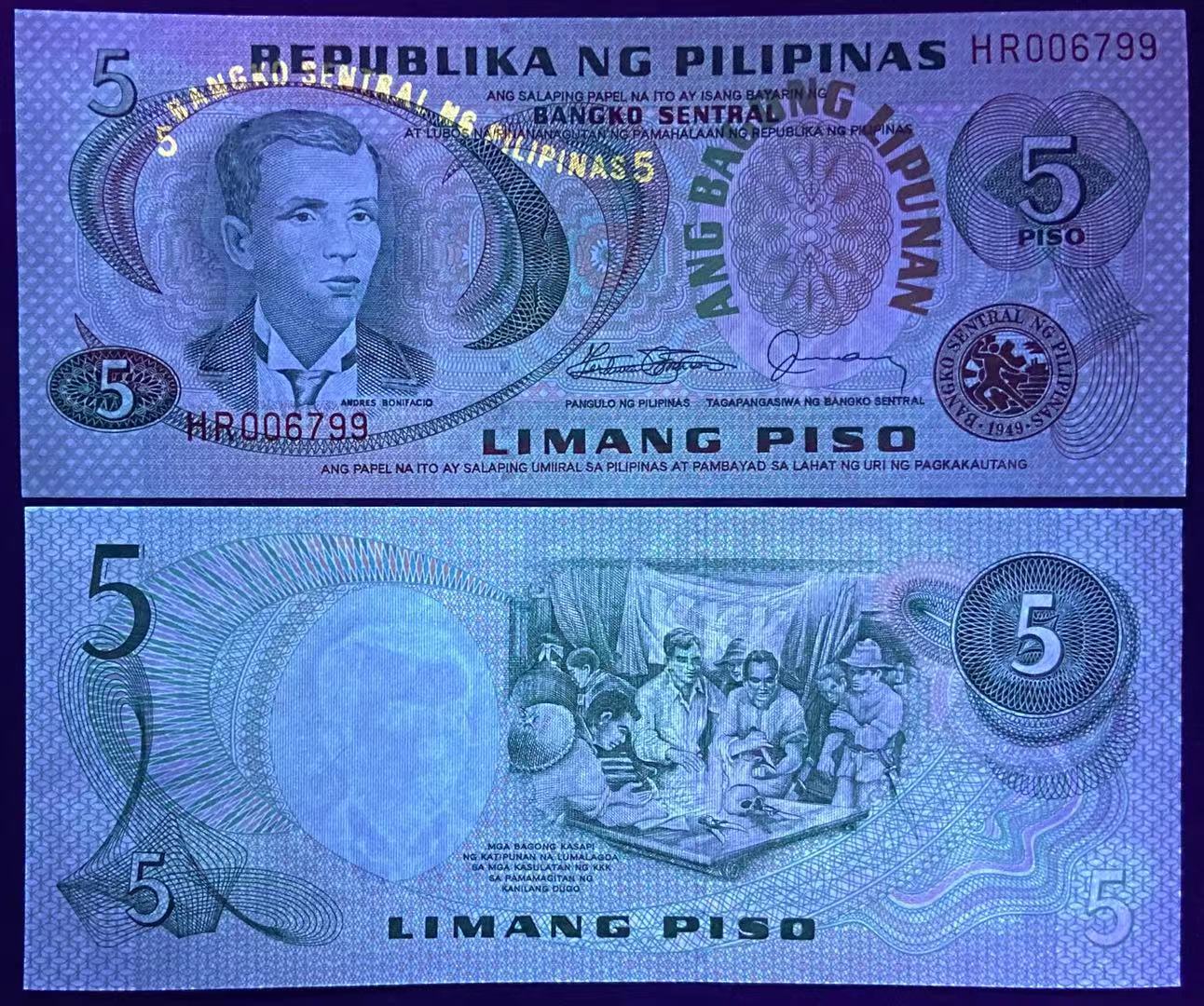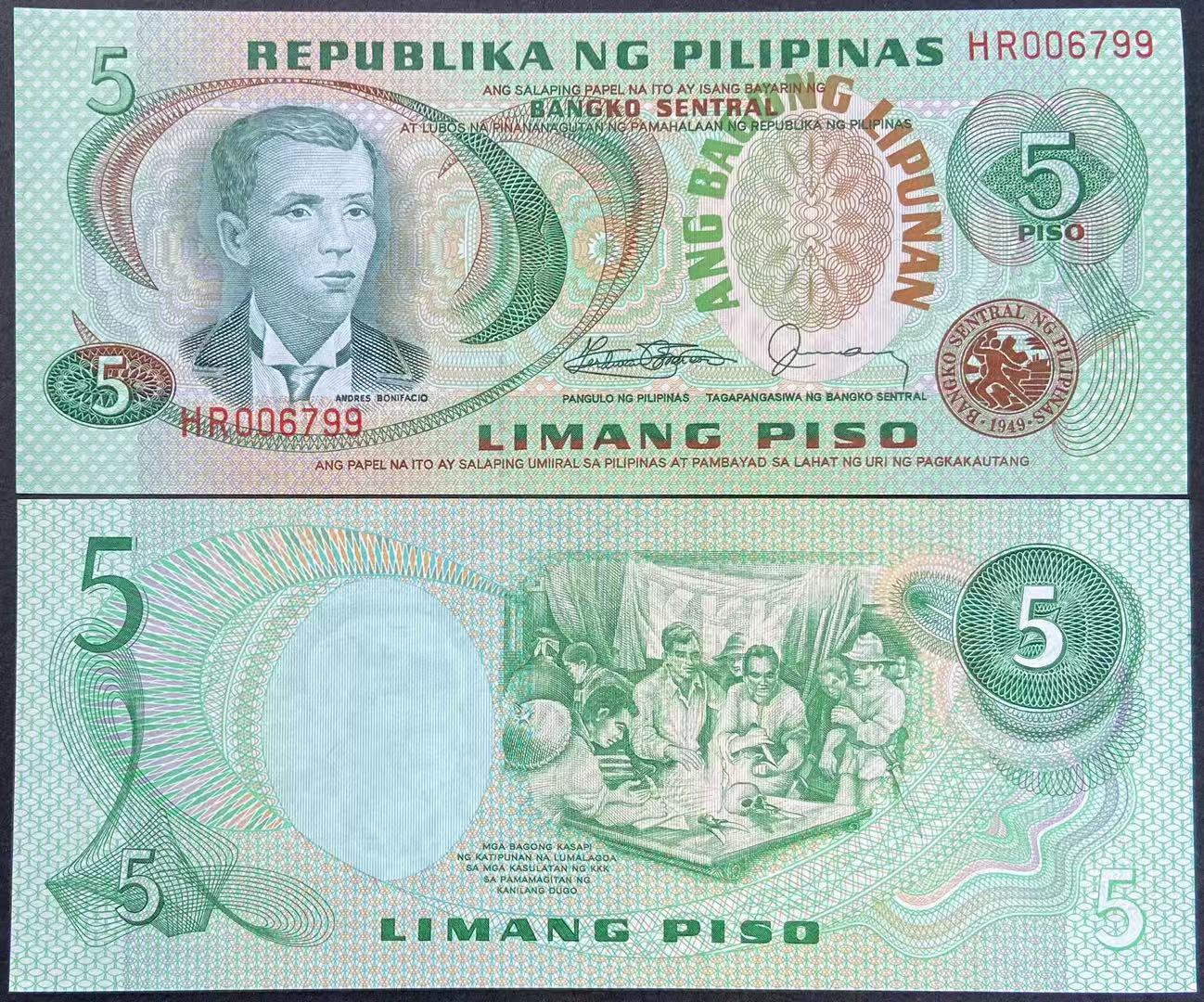 Philippines, 5 Piso, 1974-1985 P-169, UNC Original Banknote for Collection