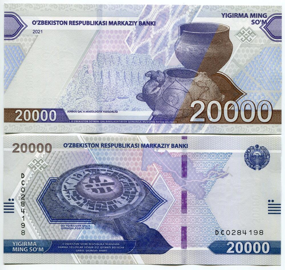 Uzbekistan Set 4 PCS 2000-20000 Soms Banknotes, 2021 P-New, UNC Banknote for Collection