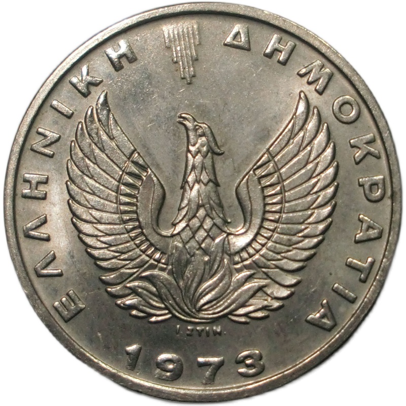 Greece 20 Drachma, 1973 Athena, 29mm Copper-Nickel Coin , Athena Phoenix Rising Coin 1 Piece for Collection