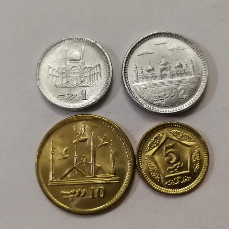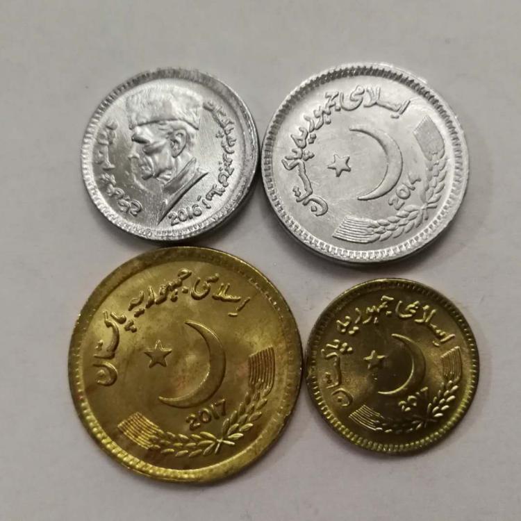 Pakistan Set 4 PCS Coins, 1.2.5.10 Rupees, F Condition, Coin for Collection
