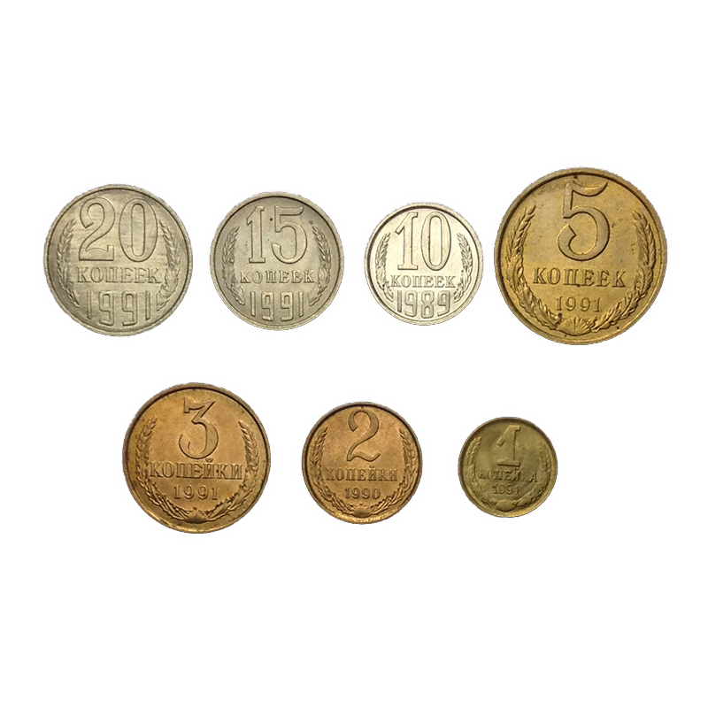 CCCP USSR Russia Set 7 PCS Coins, Old Coin for Collection