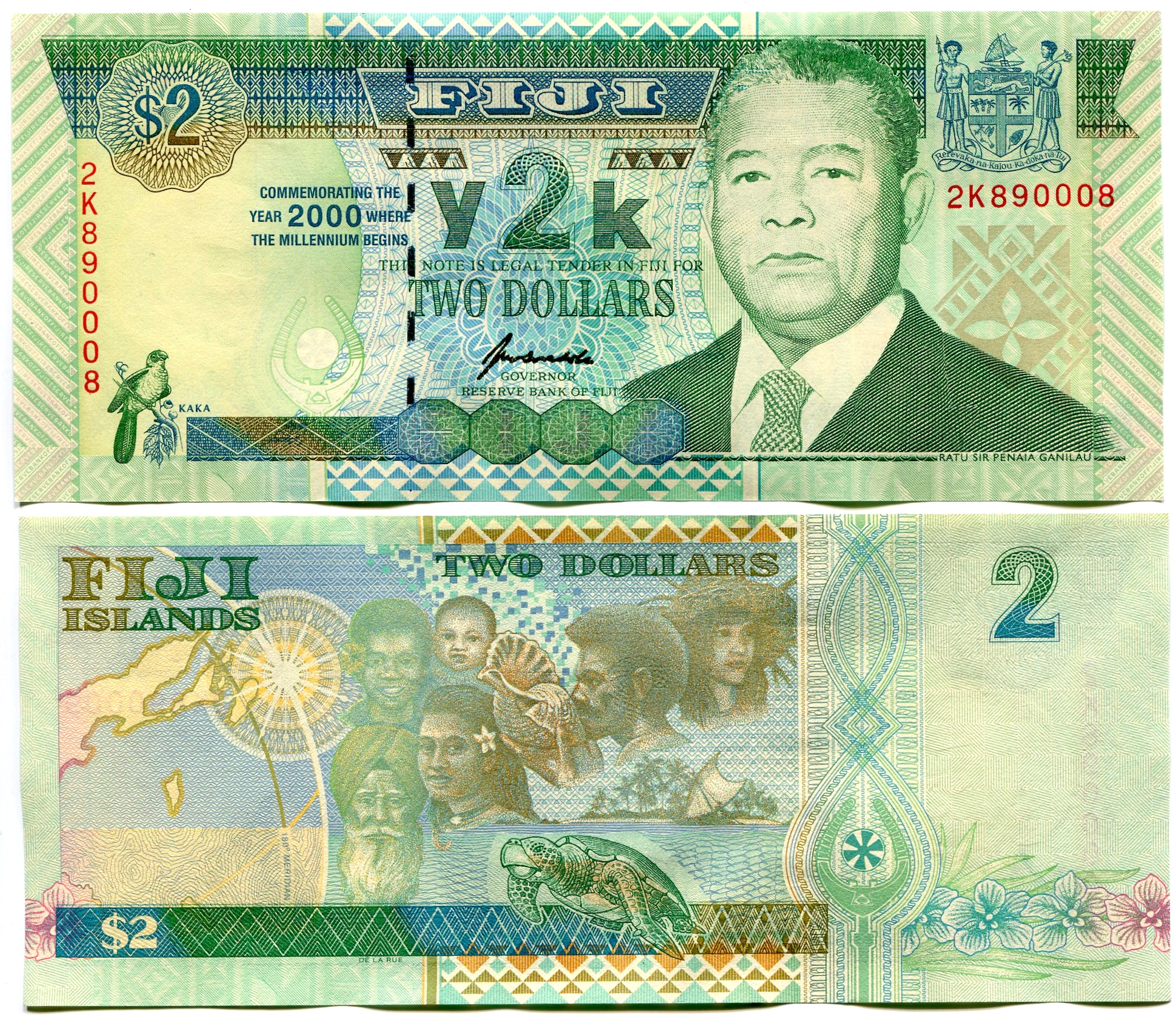 Fiji 2 Dollars, 2000 P-102, UNC Original Banknote for Collection, 1 Piece