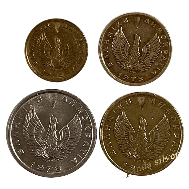 Greece Set 4 PCS Coins, 50 Lepta-5 Drachma, 1973, F Condition Used Coin for Collection