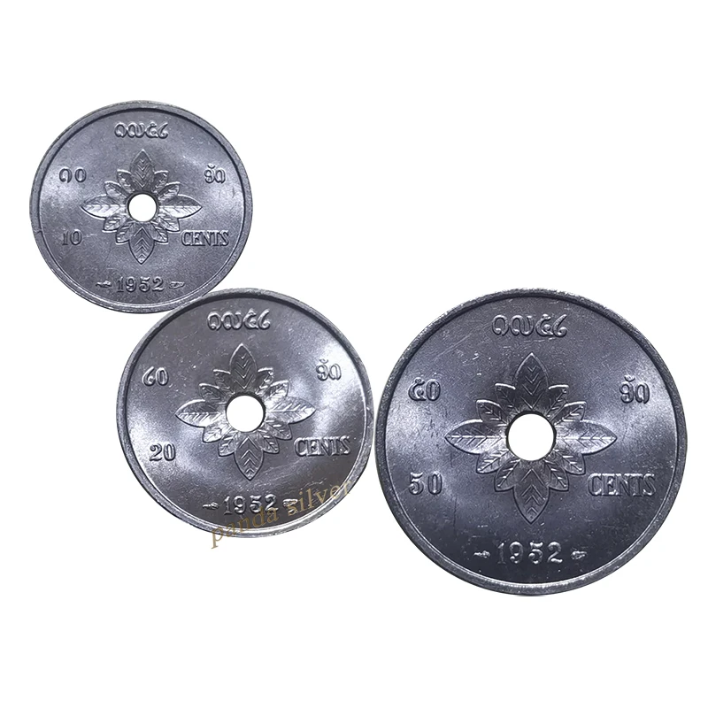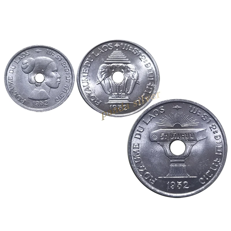 Laos 1952 Set 3 PCS Aluminium Coins, 10 20 50 ATT, Original Coin for Collection KM# 4 5 6
